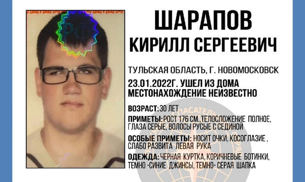 В Новомосковске пропал 30-летний местный житель Шарапов Кирилл Сергеевич, сообщает поисково-спасательный отряд "Поиск 71". Его местонахождение неизвестно с 23 января.