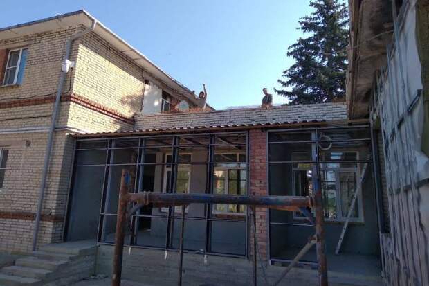 На сегодняшний день уже завершены демонтажные работы, обустроена отмостка и уложена тротуарная плитка. Кроме того, установлены новые окна ПВХ и перегородки.