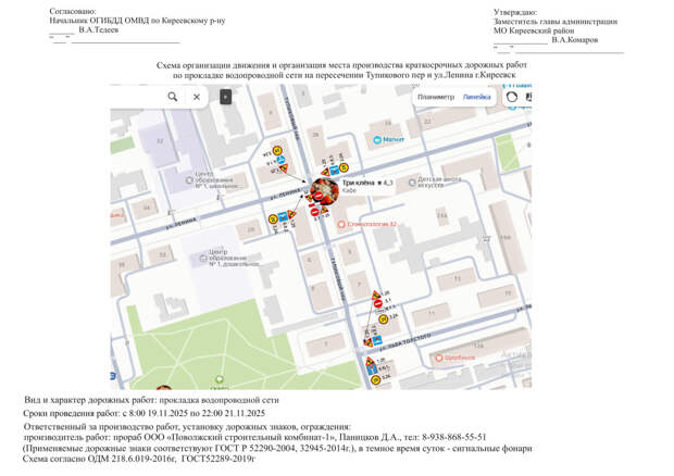 В частности, с сегодняшнего дня, 19 ноября, до десяти часов вечера 21 ноября ограничено движение машин на участках от дома №27 на улице Ленина и до дома №8 в переулке Тупиковый.